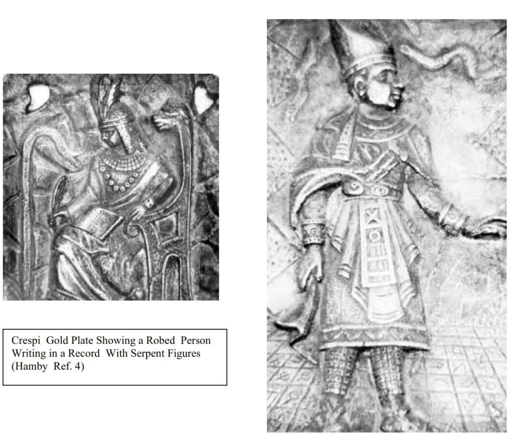 One of the plaques bore the image of a Caucasian man writing linear script with a quill pen.