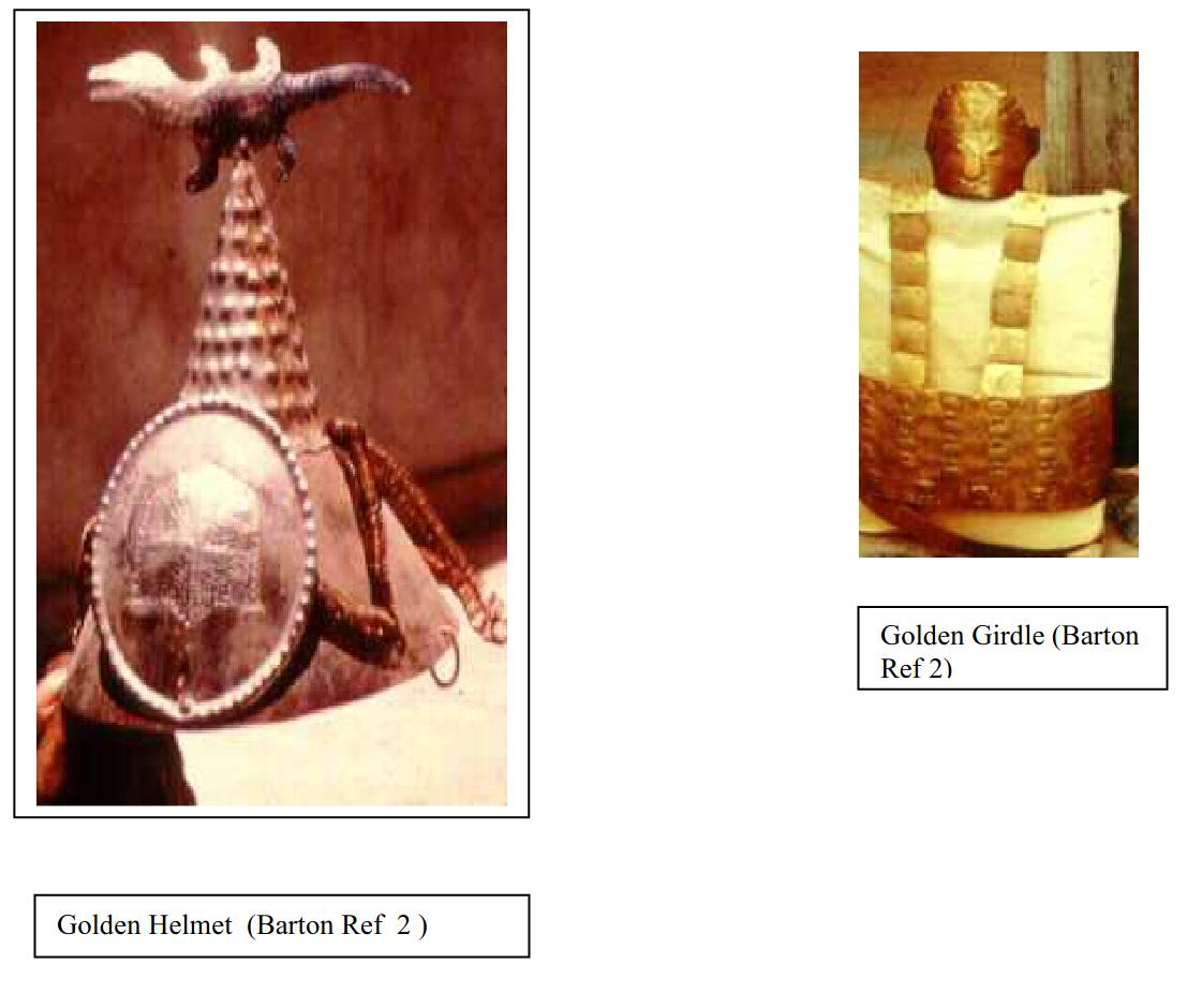 quantities of cheaply bought gold articles, the metallurgical uniqueness of some of the artifacts (such as the platinum nose cone and the radiators), the Mid-eastern artistic motifs, and the abundance of art ides for which little or no market exists (such as the air pipes and the