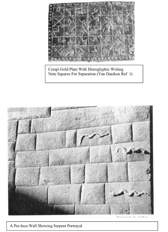 “Professor Miloslav Stingi is the leading South American scholar in the Iron Curtain countries; he graduated in the ancient civilizations of America. today he is a member of the Academy of Sciences at Prague and author of archaeological and ethnological books. In versunkenen Mayasta~dten (1971), for example, is highly acclaimed. Professor Stingl, who was a guest in my house, saw the photographs I had taken at Cuenca. ‘If these pictures are genuine, and everything indicates that they are, because no one makes forgeries in gold, at any rate not on such a large scale, this is the biggest archaeological sensation since the discovery of Troy. Years ago I myself supported the view that the Incas had no writing in the alphabetical sense of the word. And now I am faced with Inca writing. To be able to give a precise scientific verdict I should have to subject each plaque to a detailed and lengthy examination, and compare each one with material already available. For the moment I can only say that I am dumbfounded. The sun was often part of the scenery in known Inca engravings, but man was never equated with the sun, as I see time and again in these photographs. There are representations of men with sun's rays round their heads and there are men depicted with star points coming from them. The symbol of holy power has always been the head. But in these pictures the head is simultaneously sun or star. That points to new direct connections.’”